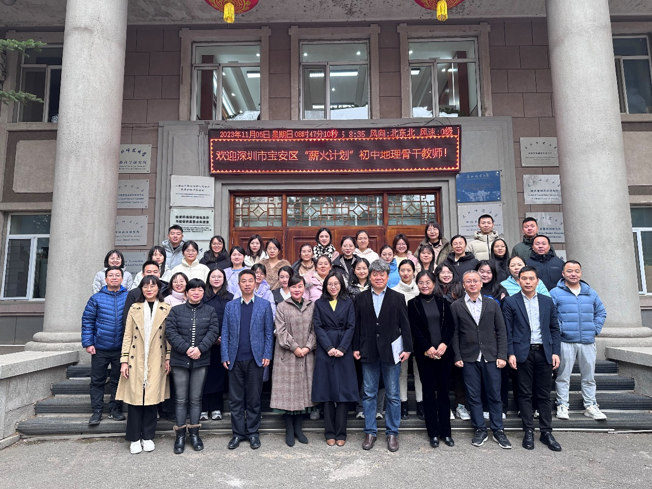 近日,深圳市宝安区“薪火计划”初中地理骨干教师素养提升项目2023年度理论研修活动在我校举行。地理科学学院院长白娥,教师教育研究院执行院长李广,教务处副处长(主持工作)、教师教育研究院副院长王向东,宝安区教育科学研究院教师发展部副主任康玉辉校长,“薪火计划”初中地理骨干教师等一同参加开班式。白娥致欢迎辞,康玉辉发表讲话。地理科学学院丁继昭老师主持会议。 作为项目研究的重要子内容之一,本次理论学习历...