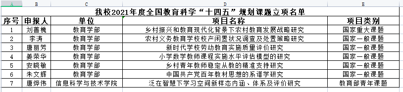 我校2021年度全国教育科学“十四五”规划课题立项名单
