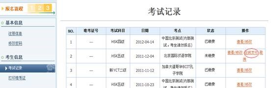 2.完成考试预定的考生,通过登录个人中心,查看“考试记录”,选择在线支付,