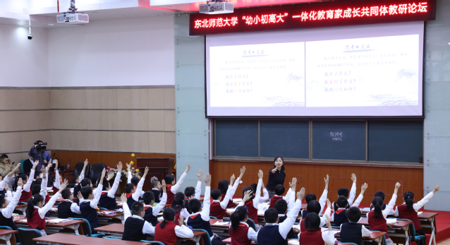 我校教师教育研究院、文学院,我校附属中学高中部、初中部,我校附属小学、附属幼儿园,我校大连保税区实验学校、东安实验学校等单位的党政负责人和相关师生代表参加了论坛。我校UGS实验区、南关区各学校相关教师代表等共计520人出席观摩本次教研公开课。省市多家媒体对此次论坛进行了采访报道。
