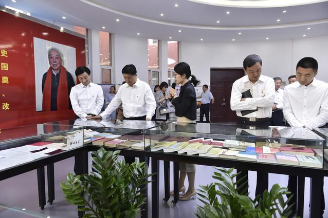在郑德荣同志先进事迹陈列室,钱万成等市领导通过现场讲解,参观了“矢志不渝的‘红色理论家’”“资深望重的‘学术奠基者’”“永久奋斗的‘大爱铸魂者’”等内容的展板,并在郑德荣同志学术著作、荣誉奖章、生前手稿、往来信件等展品前驻足参观,详细了解了郑德荣同志的光辉一生。大家一致认为,郑德荣同志以高深的学术造诣和深厚的理论功底为基础,为中共党史的研究、传播和党的宣传思想工作贡献了重要的理论资源和精神财富。这位“红色理论家”的一生,始终以强烈的政治责任感,牢记并践行党史专业“资政育人”的社会使命。