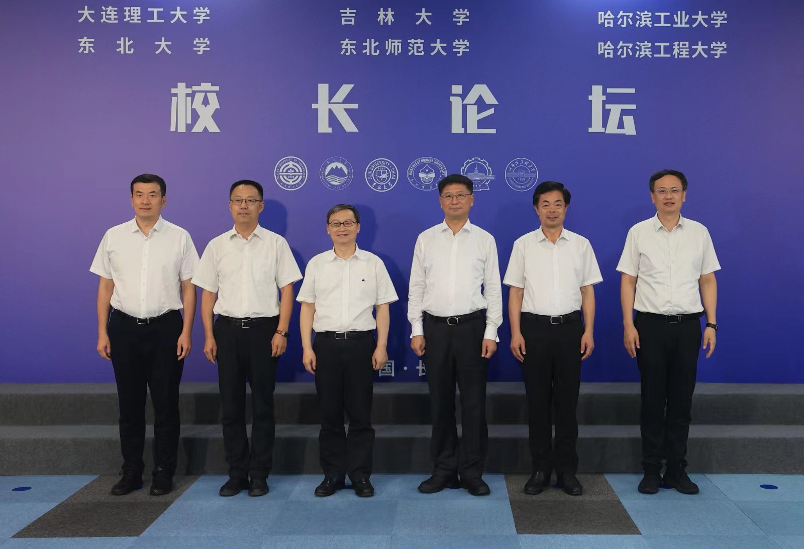 8月3日,2023年东北六校校长论坛在吉林大学举行。吉林大学校长张希、哈尔滨工业大学校长韩杰才、东北大学校长冯夏庭、哈尔滨工程大学校长姚郁、我校校长徐海阳、大连理工大学副校长张弛等出席论坛。会议由张希主持。