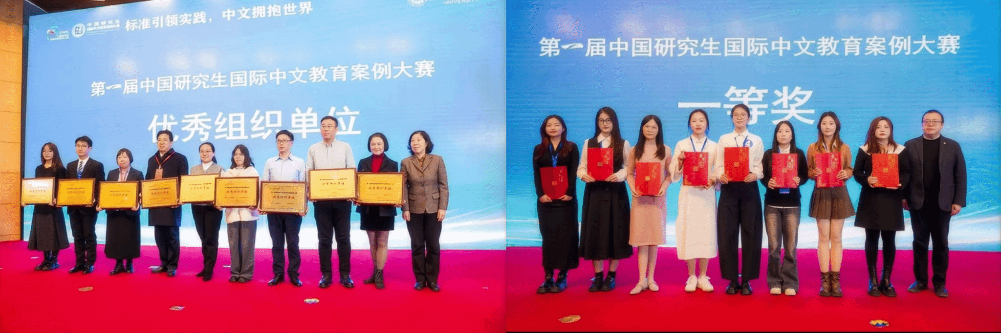 博士研究生赵美威、刘奕兵、硕士研究生张洪嘉、陶静怡、张咪团队的案例作品获得国际中文教育新标准赛道三等奖(指导教师刘涛教授)。硕士研究生张浩宇、韩宛璐、赵远瞩团队的案例作品获得国际中文教育新标准赛道三等奖(指导教师刘育雁副教授、杨明慧老师)。硕士研究生李珂、张叶青、李晓珊、安琪、刘亚昕团队的案例作品获得国际中文教育新标准赛道三等奖(指导教师陈鸿瑶教授、王斯璐老师)。硕士研究生刘乙丁、王嘉怡、周跃芝、王子琪团队的案例作品获得国际中文教育新标准赛道三等奖(指导教师陈鸿瑶教授、王斯璐老师)。